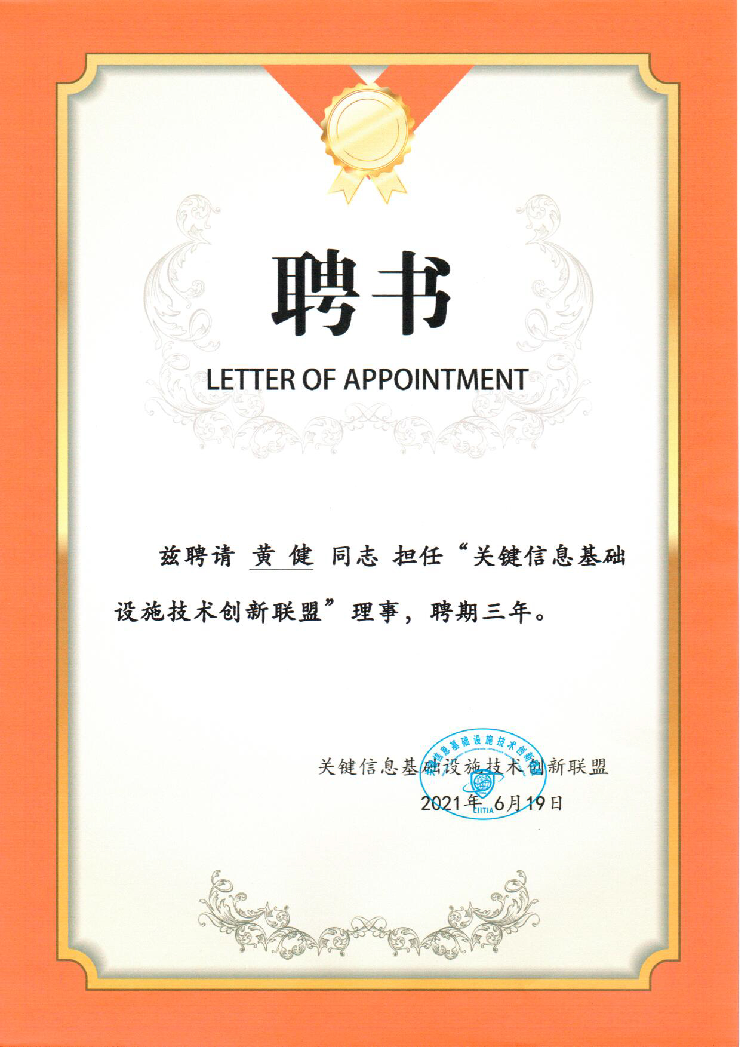 云涌科技副總裁黃健先生被聘請擔任“關(guān)鍵信息基礎(chǔ)設(shè)施技術(shù)創(chuàng)新聯(lián)盟”理事。