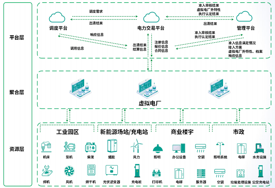 公司是泰州“首家”完成虛擬電廠注冊的企業(yè),虛擬電廠作為一種智慧能源管理系統(tǒng),被稱為能源產(chǎn)業(yè)鏈的“最后一公里“,其核心是將分布式的發(fā)電設備、儲能系統(tǒng)、電動汽車、可調(diào)節(jié)負荷等資源聚合起來,通過智能算法和通信技術統(tǒng)一調(diào)度,使其能夠像傳統(tǒng)發(fā)電廠一樣參與電力市場交易或響應電網(wǎng)需求,從宏觀層面上,實現(xiàn)能源的高效利用和電網(wǎng)穩(wěn)定運行。